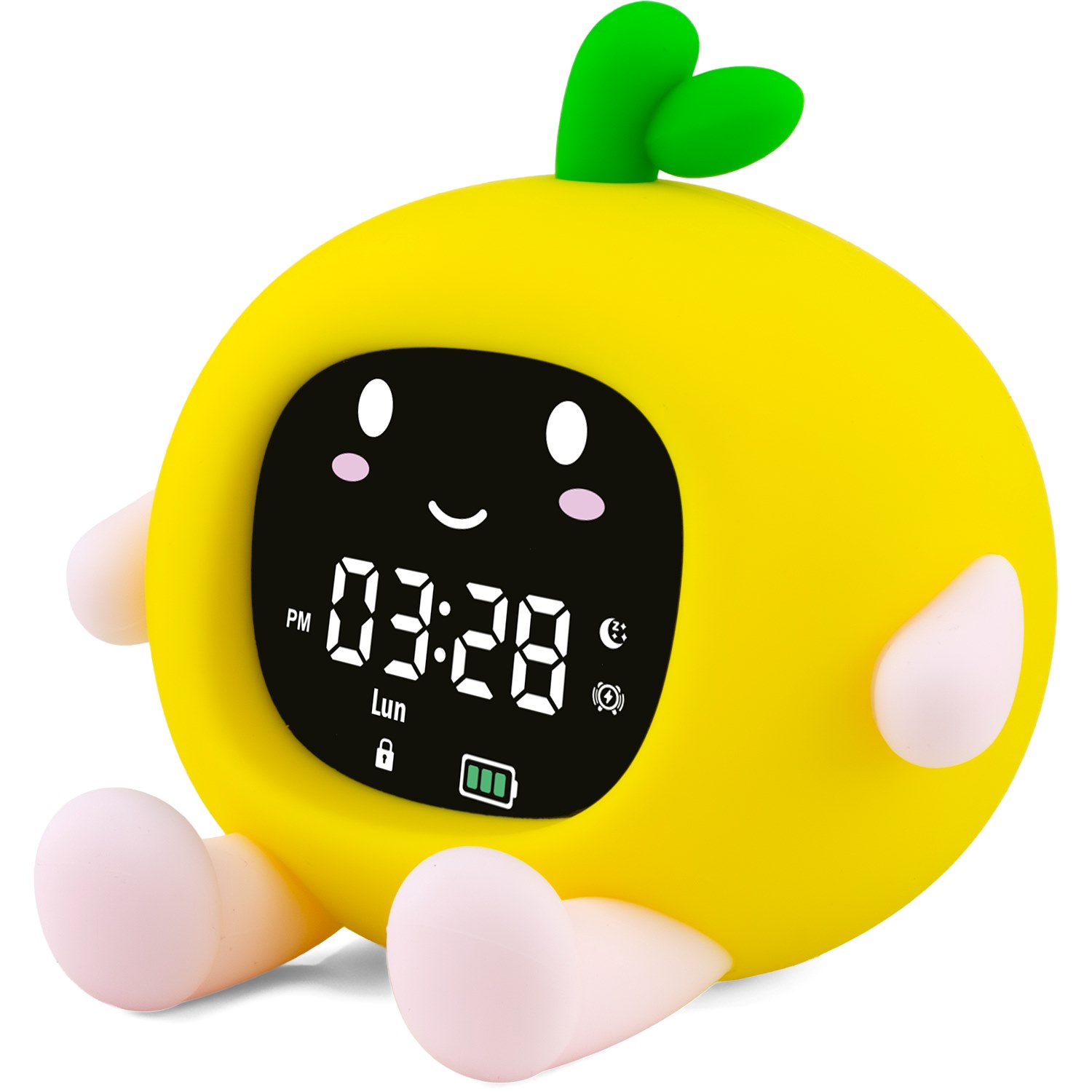 Cette veilleuse en silicone souple est dotée d'une fonction réveil intégrée. Avec son affichage digital clair, l'heure est visible d’un coup d’œil, sans écran tactile compliqué.