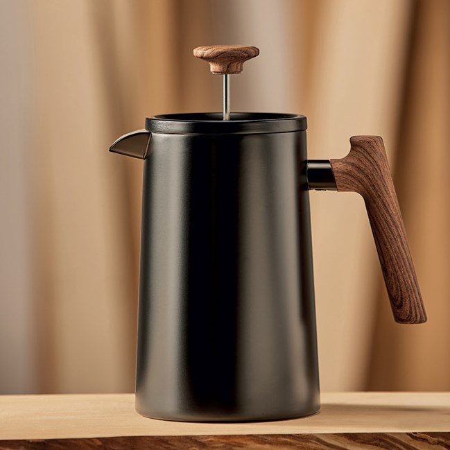 - Cette cafetière fabriquée en acier inoxydable à double paroi dévoile une forme épurée à laquelle le manche en bois ajoute une touche d'élégance tout en étant pratique. Il vous évite de vous brûler lorsque la cafetière est chaude.