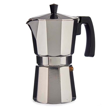 Cafetière en aluminium avec poignée et capacité de 450ml pour 9 tasses.
