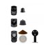 Accessoires inclus : 3 adaptateurs pour capsules et café moulu, cuillère doseuse avec tasseur.