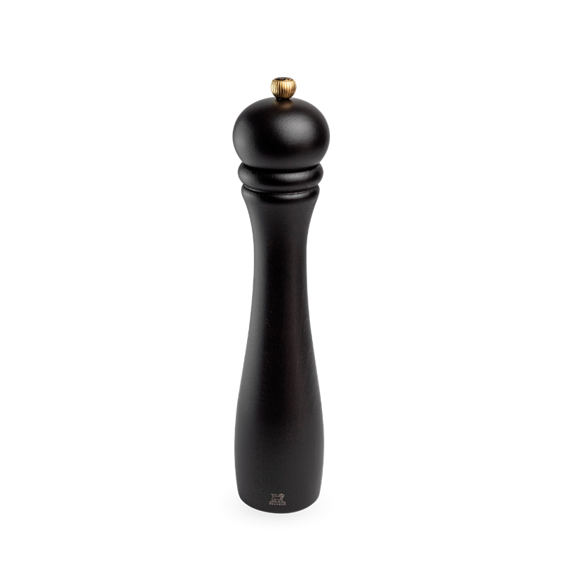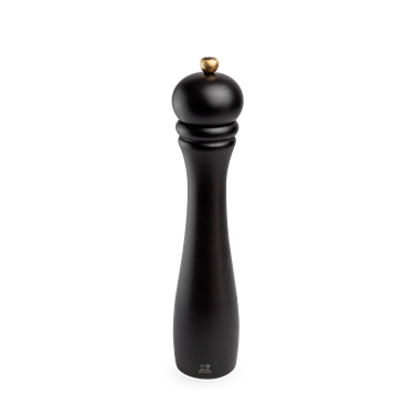 Silhouette élancée et majestueuse, corps en bois de hêtre teinté dans un élégant coloris chocolat, le moulin à sel Checkmate 30 cm de Peugeot séduit par son raffinement naturel.