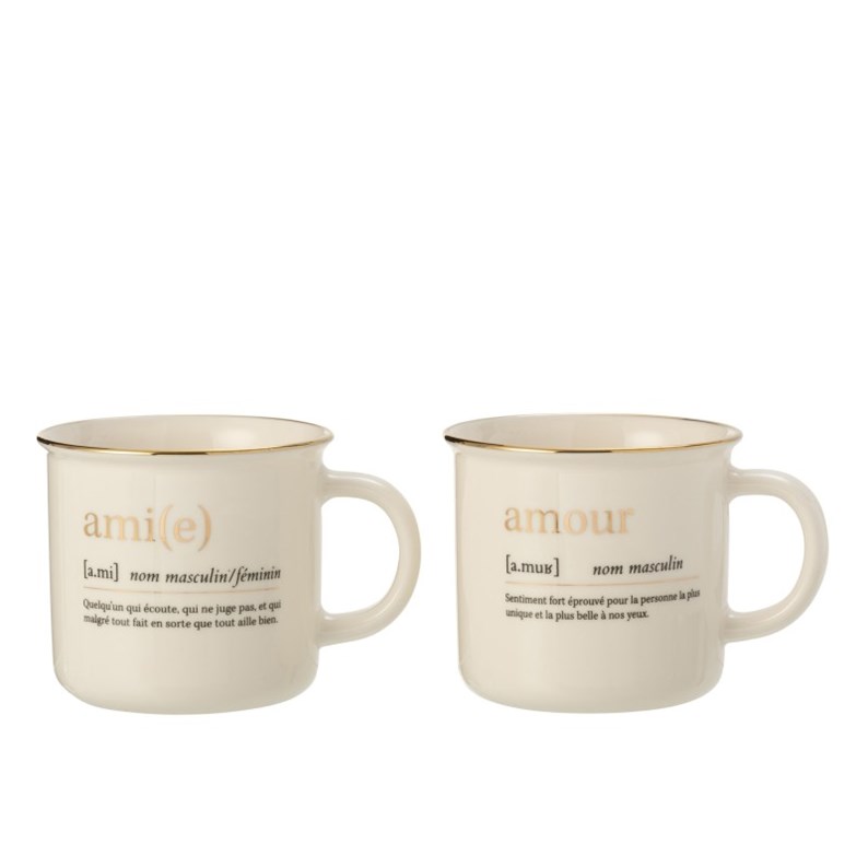 MUG MESSAGE AMOUR AMI CERAMIQUE OR ASSORTIMENT DE 2