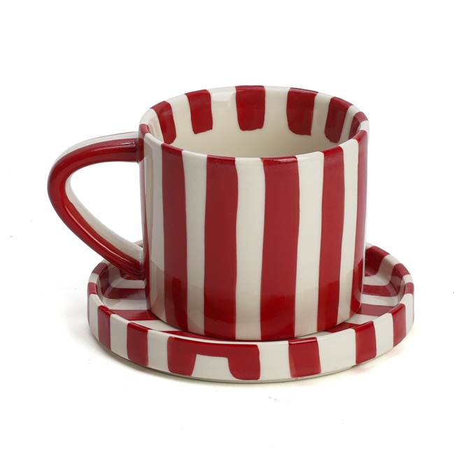 Tasse en céramique rayée avec soucoupe 350 ml Rouge