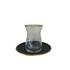 Buvez votre thé avec élégance avec nos tasses à thé en verre transparent avec un bord doré sur une soucoupe noire avec un filet doré.