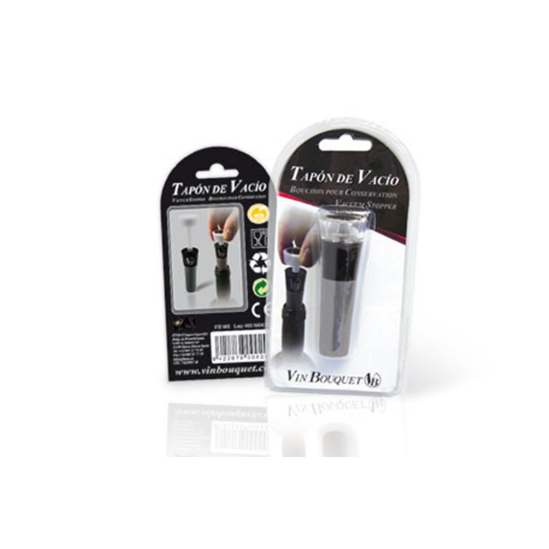 Un bouchon qui permet de garder les arômes et les saveurs plusieurs jours après ouverture de votre bouteille de vin. Il est important, lors d'un repas, s'il reste du vin dans la bouteille, d'extraire l'oxygène à l'aide de ce bouchon avant de fermer la bouteille pour éviter que le vin s'oxyde au contact de l'air. Cet article d’œnologie s'adapte facilement sur toutes les bouteilles et il est très utile tous les jours.