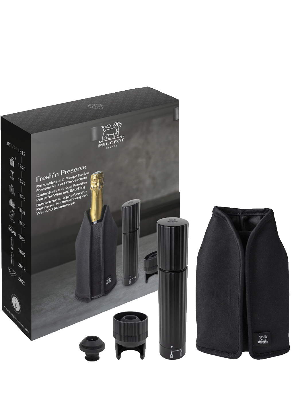 • 1 bouchons à vin et 1 bouchon pour vins effervescents réutilisables inclus