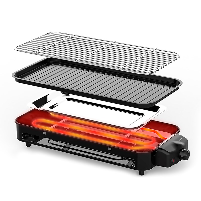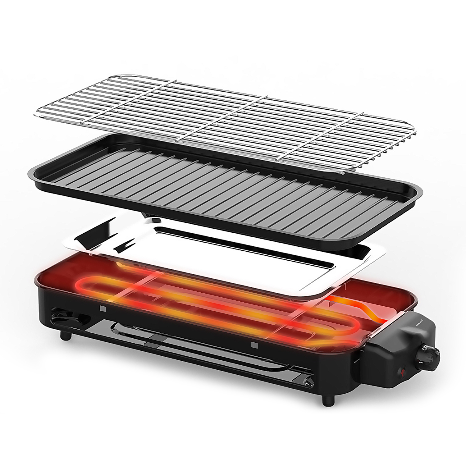 • Conception démontable : le barbecue électrique portable pour l'intérieur peut être divisé en 5 parties. Ce qui facilite le nettoyage et le montage.