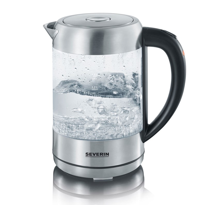 SEVERIN - Corps inox de qualité supérieure et verre résistant à la chaleur - Commande à 1 main pratique et agréable - Nettoyage facile avec son couvercle à grande ouverture - Socle 360° : la bouilloire peut être replacée dans n'importe quel sens sur le socle - Résistance cachée par un fond plat inox - Sécurité contre la surchauffe - Arrêt automatique dés l'ébullition - Interrupteur marche-arrêt avec voyant lumineux - Bec verseur - Pieds antidérapants en caoutchouc - Enrouleur de câble