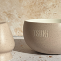 Façonné à la main en céramique de kaolin avec un émaillage craquelé artisanal, le bol gravé TSUKI est à la fois élégant et pratique grâce à son bec verseur.