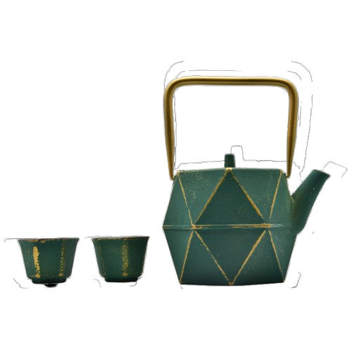 Cette théière ne laissera personne indiffèrent, elle a un  caractère fort,  un  design moderne  et une taille  parfaite pour une entrevue  avec un ou une ami(e). Les deux petits bols en fonte accompagnent cette théière, pour avoir toujours un bol de thé à la bonne température.