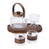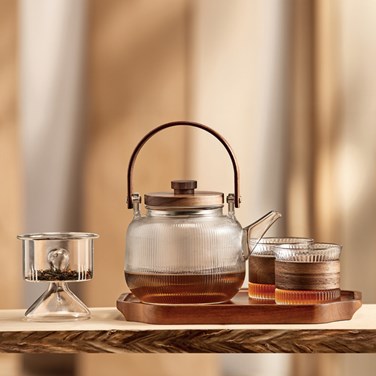 - Les différentes pièces du service à thé sont fabriquées en verre et en bois, deux matières aussi élégantes que pratiques. Le verre borosilicate est spécialement choisi pour sa robustesse dans le temps et sa très bonne résistance à la chaleur.