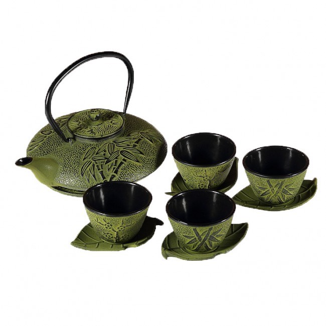 L'heure du thé a sonné ! Il est temps de déguster votre boisson chaude favorite dans ce splendide service à thé en fonte, aux tendances asiatiques, tout de vert et décoré de magnifiques motifs bambou.
