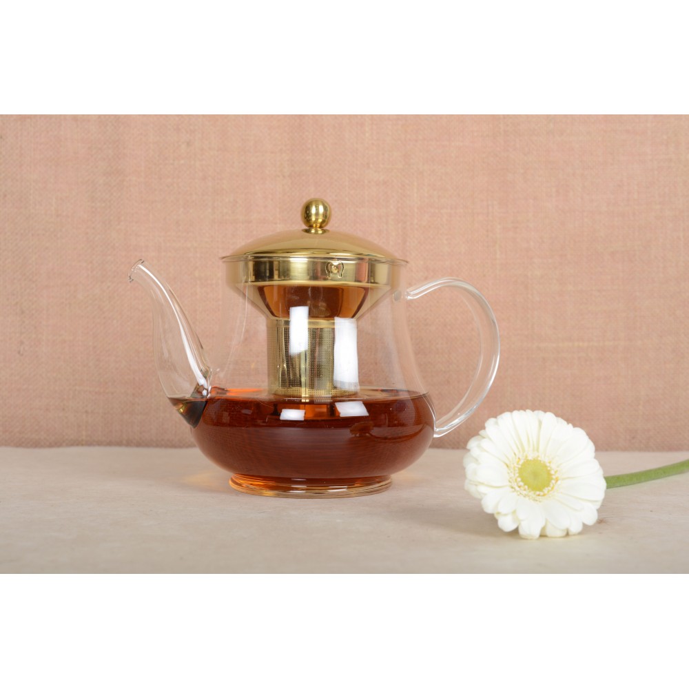 Theiere doree en verre