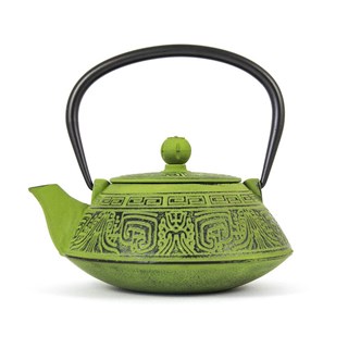 Belle théière en fonte de couleur verte avec des motifs tribaux pour lui donner un aspect traditionnel très esthétique. D'une contenance de 80cl, cette théière dispose d'un filtre amovible en acier inoxydable dans lequel vous pouvez verser les feuilles de votre thé préféré.