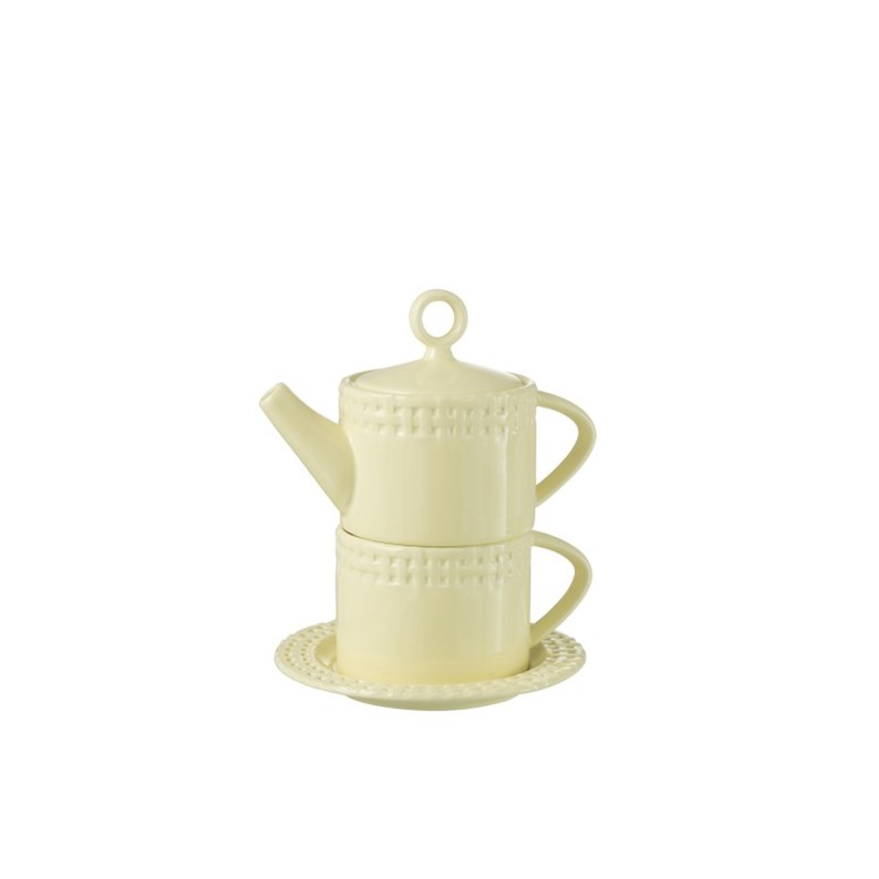 Découvrez notre élégante théière en céramique jaune, accompagnée de sa tasse assortie et d'une sous-tasse, pour une expérience de thé inégalée. Avec des dimensions de 18x17x22 cm, cet ensemble est conçu pour allier esthétique et fonctionnalité. La couleur jaune vive apporte une touche de gaieté à votre table, tout en s'intégrant harmonieusement à tout type de décoration intérieure. La céramique de haute qualité assure une excellente rétention de la chaleur, permettant à votre thé de rester chaud plus longtemps. Que ce soit pour un moment de détente en solo ou pour impressionner vos invités lors d'un goûter, cette théière avec tasse et sous-tasse est le choix parfait. Offrez-vous un instant de plaisir et de raffinement avec cet ensemble unique qui allie tradition et modernité.