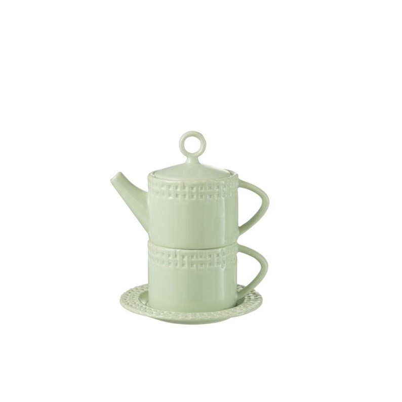 Découvrez notre élégante théière avec tasse et sous-tasse en céramique, une pièce maîtresse pour tout amateur de thé. Arborant une teinte verte apaisante, cet ensemble est conçu pour apporter une touche de sophistication à votre rituel quotidien. Avec des dimensions de 18x17x22 cm, il est parfaitement proportionné pour une infusion optimale. La céramique de haute qualité assure une excellente rétention de la chaleur, permettant à votre thé de rester chaud plus longtemps. La tasse et la sous-tasse assorties complètent harmonieusement l'ensemble, offrant une expérience de dégustation raffinée. Que ce soit pour un moment de détente en solitaire ou pour impressionner vos invités, cette théière est un choix idéal qui allie fonctionnalité et esthétique. Laissez-vous séduire par son design intemporel et sa praticité, et transformez chaque pause thé en un instant de pur plaisir.