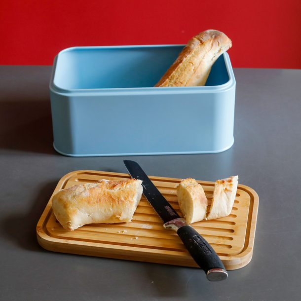 - Le couvercle en bambou protège votre pain des éléments extérieurs. Retirez-le pour le transformer en planche à découper.
