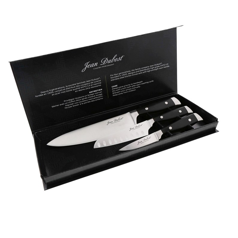 Faites l'expérience de l'excellence et de la tradition avec le Coffret 3 Couteaux Massif de Jean Dubost.