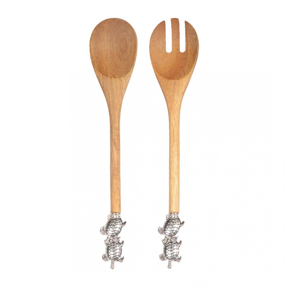 Apportez une touche de charme nautique à vos repas avec nos couverts à salade en bois, ornés d'une élégante tortue argentée en haut, pour une table à la fois sophistiquée et unique.