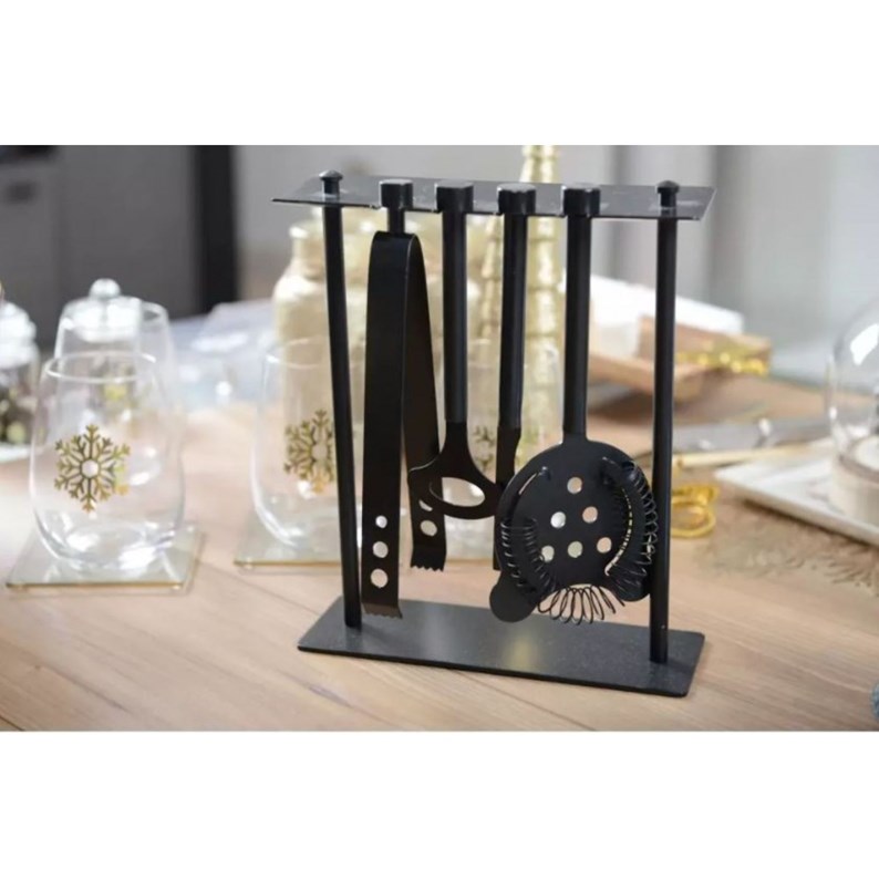 Outils de bar sur support 5 pièces coloris noir