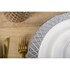 Des assiettes blanches ornées de motifs ""perles"" sur leurs contours ajoutent une touche de raffinement et de sophistication à chaque repas.