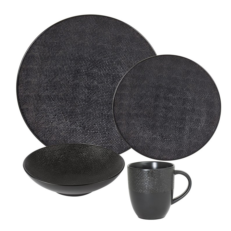 Tout de grès vêtus, son aspect satiné et ses motifs en reliefs donnent du caractère à cette collection ! Elle est composé de 4 assiettes plates 27 cm, de 4 assiettes à dessert 21 cm, de 4 assiettes creuses de 19 cm et ses 4 mugs assortis.