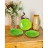 Découvrez un lot de cinq assiettes vertes de Vallauris en forme de fleur, agrémentées de feuilles fines qui dessinent un relief délicat. Leur faïence apporte une matière chaleureuse et tactile, idéale pour dresser une table printanière ou sublimer un service quotidien. Les proportions fines et la coupe florale mettent en valeur entrées et desserts, tandis que la teinte verte instaure une ambiance naturelle et conviviale pour vos repas en petit comité ou vos repas de fête.