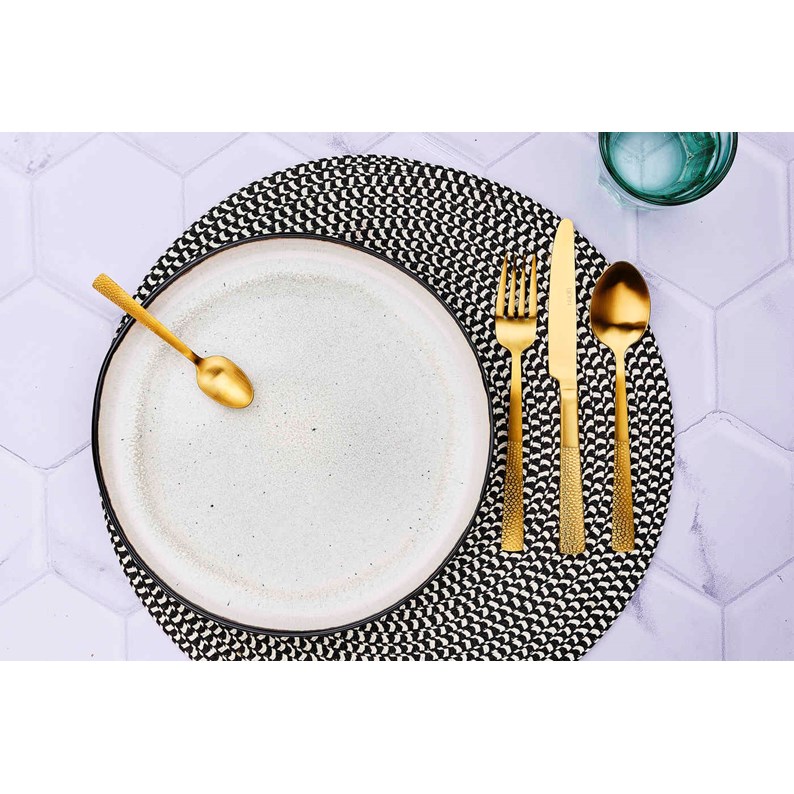 Fabriqué en acier inoxydable pour résister à une utilisation quotidienne, ces couverts sont durables et d'un entretien facile au lave-vaisselle. Dans sa version de couleur dorée avec une finition mate, ce modèle à l'effet miroir chic et éclatant illuminera votre table et étonnera vos convives.