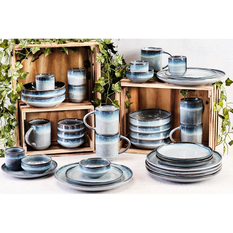 Le service Complet regroupe toutes les pièces de vaisselle de la collection pour une utilisation au quotidien. L'assortiment se compose de 12 assiettes, 12 bols et 6 mugs et 6 tasses pour permettre un dressage de table complet pour 6 personnes.