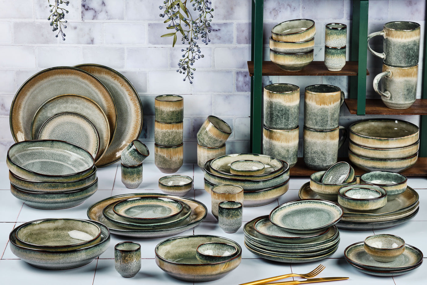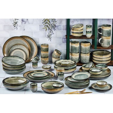 Le service Complet Plus regroupe toutes les pièces de vaisselle de la collection (hors produits de service). L'assortiment se compose de 18 assiettes plates et 18 bols de trois tailles différentes, 6 assiettes creuses, 12 tasses espresso et lungo et 6 mugs pour permettre un dressage de table complet pour 6 personnes.