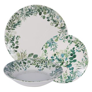 Ce service est composé d'assiettes plates de 27 cm, d'assiettes creuses de 20.5 cm et d'assiettes à dessert 21.5 cm.
