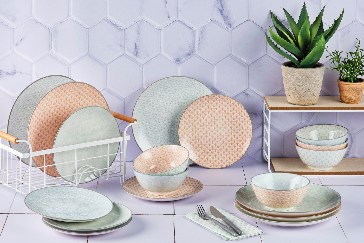 La collection PATTERN dans sa déclinaison Pastel sollicite votre créativité et permet un mix and match facile des couleurs lors du dressage de la talbe. Les motifs et les couleurs tournent d'une pièce à l'autre et nous invitent à l'échange et au partage.