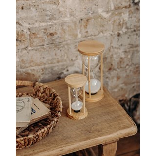Grand modèle : diamètre : 11 cm / hauteur : 24 cm / durée d'écoulement du sable : 5 min