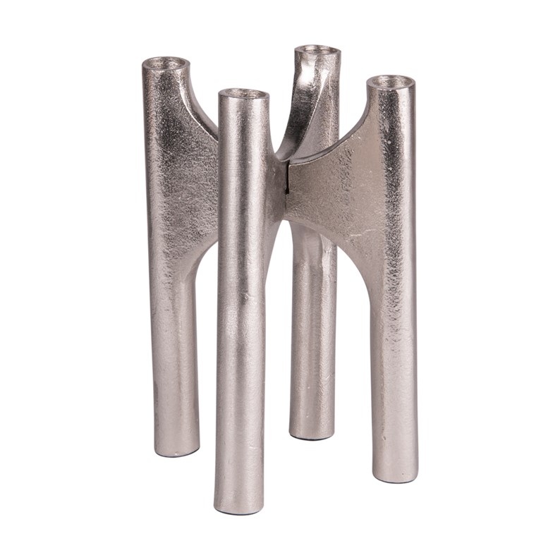 Plongez dans l'ambiance envoûtante de la lumière avec le chandelier argent en fonte d'aluminium se composant de 4 branches. Incarnant la grâce intemporelle et l'élégance classique, ce chandelier devient le centre d'attention de votre espace, créant une atmosphère chaleureuse et sophistiquée. Avec sa magnifique conception, il ajoute une touche de charme et de raffinement à vos moments spéciaux. Grâce à ses 24 cm de hauteur, ce chandelier crée une présence élégante sans être envahissant, ce qui en fait un accessoire de table parfait pour diverses occasions. Que ce soit pour une soirée romantique, une occasion spéciale ou simplement pour ajouter une touche de charme à votre espace, ce chandelier est un choix polyvalent qui s'adapte à différents contextes.