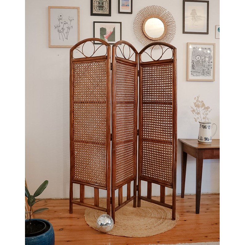 Invitez ce paravent en rotin et cannage au style années 60/70, qui apporte une note chaleureuse et naturelle à votre intérieur. Ses trois vantaux articulés offrent une séparation modulable, idéale pour créer une alcôve intime ou délimiter un coin bureau sans alourdir l'espace, tandis que le cannage laisse filtrer la lumière pour une ambiance douce. Son allure vintage insuffle caractère et équilibre à une décoration contemporaine.