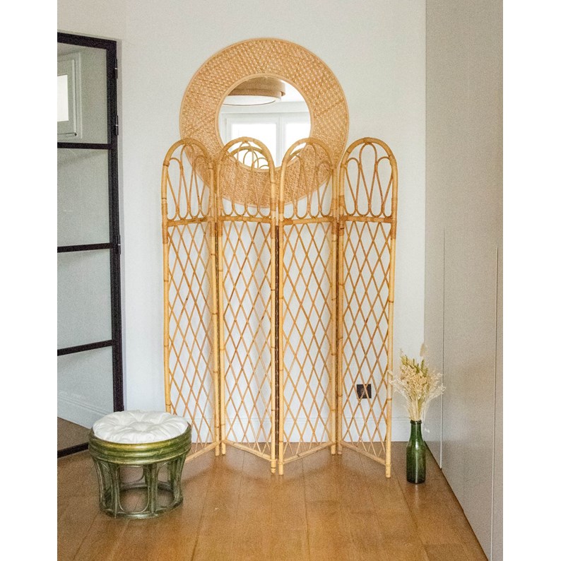 Invitez ce paravent en rotin à structurer votre intérieur avec élégance : ses quatre panneaux au sommet arrondi dessinent une séparation légère et aérienne, idéale pour créer un coin lecture ou dissimuler un dressing sans alourdir la pièce. Le tressage naturel apporte chaleur et texture, laissant filtrer la lumière pour une ambiance douce et accueillante. Plié, il se glisse facilement derrière un canapé ou dans une entrée pour plus de modularité.