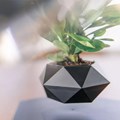 Le pot en forme hexagonale noir design avec son aimant intégré lévite sur la base carrée une fois l'appareil branché. Il apporte une touche contemporaine et magique à votre décoration !