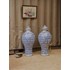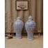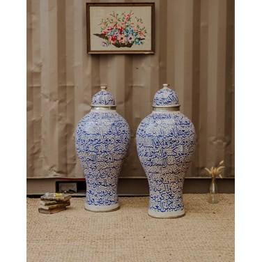 Ajoutez une touche d'évasion avec ce lot de deux jarres marocaines en céramique, coiffées de couvercles et ornées de détails argentés. Leur décor bleu et blanc et leur silhouette apportent une présence qui habille une entrée ou un salon. Elles marient artisanat et élégance contemporaine, créant une atmosphère chaleureuse et raffinée.