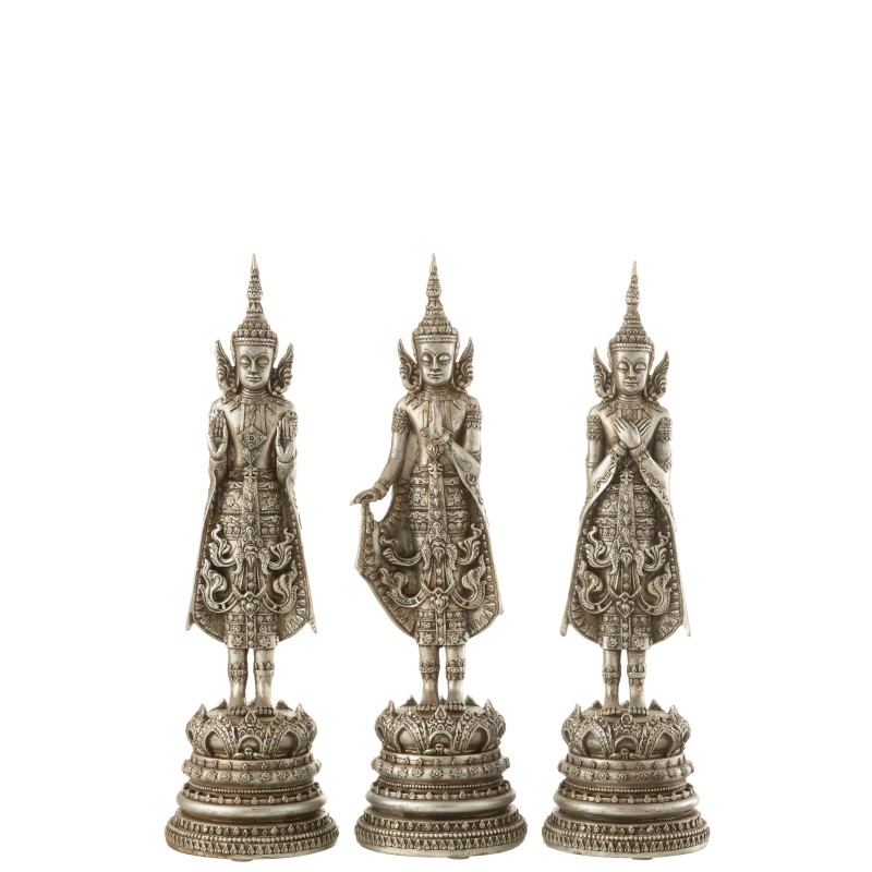Lot de 3 bouddha debout en poly argent 12x12x43cm  En savoir plus