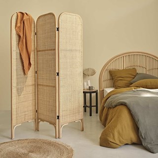 Ce paravent en rotin et cannage est parfait dans une chambre pour délimiter l'espace et créer un coin d'intimité. Il apportera chaleur et une note d'exotisme. Le paravent se ferme intégralement mais ne peut pas être totalement déplié. Caractéristiques : Matière : Rotin - Couleur : Naturel - Largeur : 126 cm - Profondeur : 20 cm - Hauteur : 170 cm - Poids : 5,5 kg - Garantie : 5 ans - Montage : Livré monté.