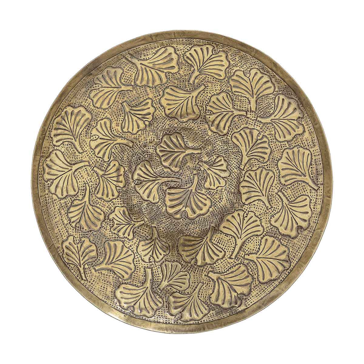 Plateau rond en alu frappé finition or vieilli motif ginko bloomingville