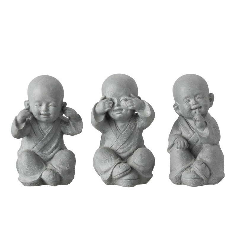 Set de 3 moines de la sagesse en résine gris 15x18x27 cm  En savoir plus