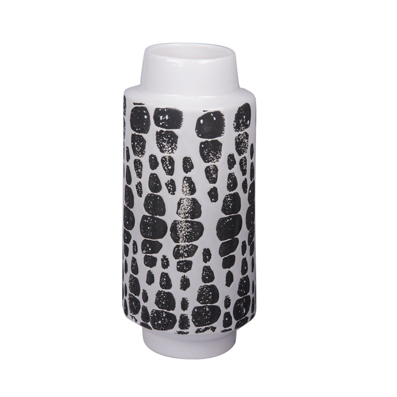 Adoptez ce magnifique vase de la gamme Luanda ! Pour une décoration graphique teintée d'un esprit tribal, ce vase en céramique sera idéal ! Vous apprécierez les détails minutieux et le contraste des couleurs. Fabriqué au Portugal, la réalisation artisanale rend chaque pièce unique ! Et pour une harmonie complète, accompagnez le de nos vases de la même gamme !