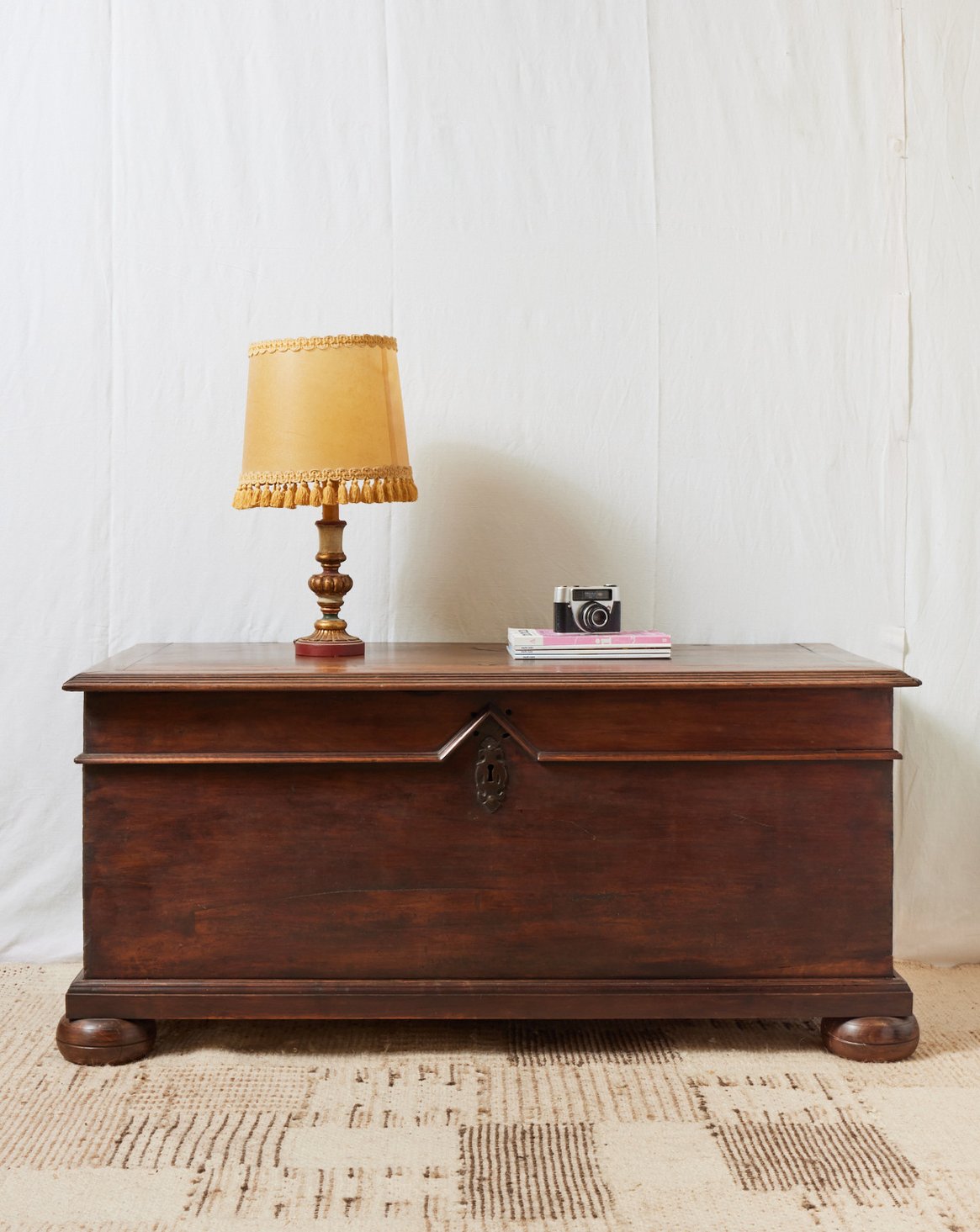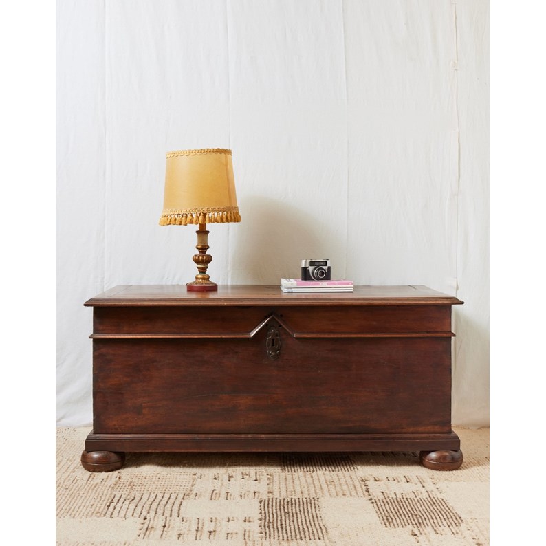 Offrez ce coffre de mariage du XVIIe siècle, témoin d'un travail d'ébénisterie traditionnel réalisé entièrement à la main. Sa serrure d'origine, ses poignées métalliques et son armature cloutée à la forge révèlent un savoir-faire ancien, tandis que les pieds boules lui donnent une assise élégante et stable. Son volume intérieur généreux invite au rangement du linge ou des trésors familiaux et crée une présence chaleureuse dans une entrée ou un salon. Pièce rare, morceau d'histoire conservé dans un état remarquable.