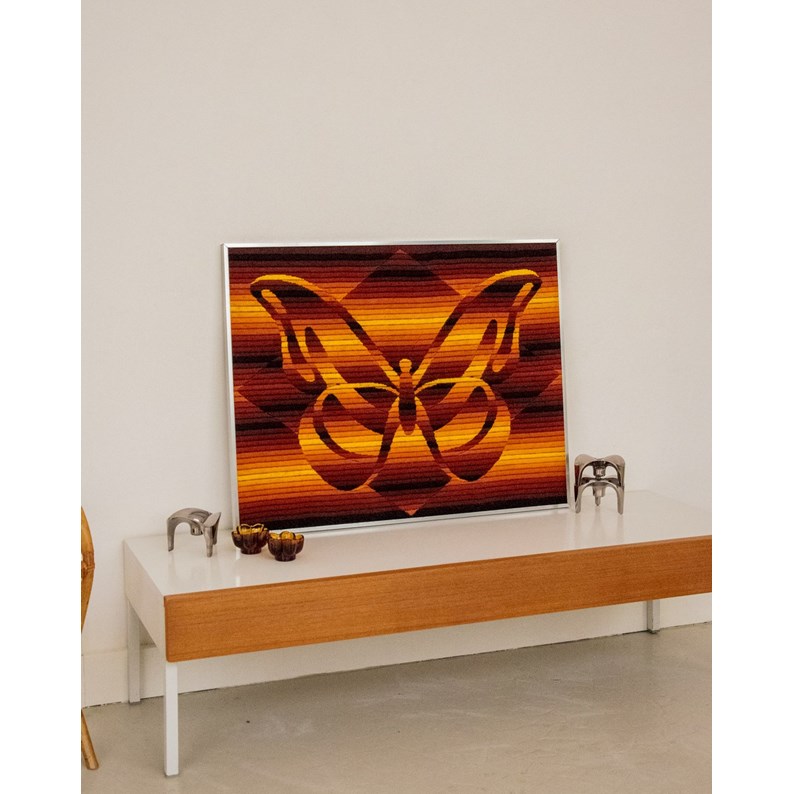 Découvrez cette tapisserie cinétique attribuée Patrice Allart, édition Seg Paris, une œuvre vintage des années 70 tissée en fils de laine au point large sur canevas et montée dans un cadre aluminium. Son relief texturé et ses motifs géométriques animent subtilement la surface, créant un jeu de mouvement et de couleur qui capte le regard. De format contenu, elle s'intègre aussi bien au-dessus d'un meuble qu'à côté d'une bibliothèque, apportant chaleur et caractère à une pièce. Idéale pour une ambiance rétro-chic, elle dialogue avec des intérieurs contemporains.