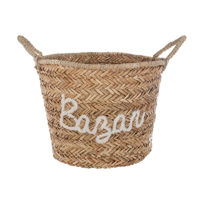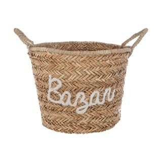 Créer une jolie décoration chic et tendance dans la maison grâce à ce panier en paille tressée avec broderie blanc . Marqué de l'inscription ""Bazar"", ce panier sera l'endroit idéal pour ranger les jouets de votre enfant.
