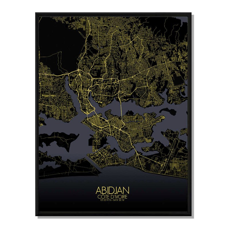 Abidjan carte ville city map nuit