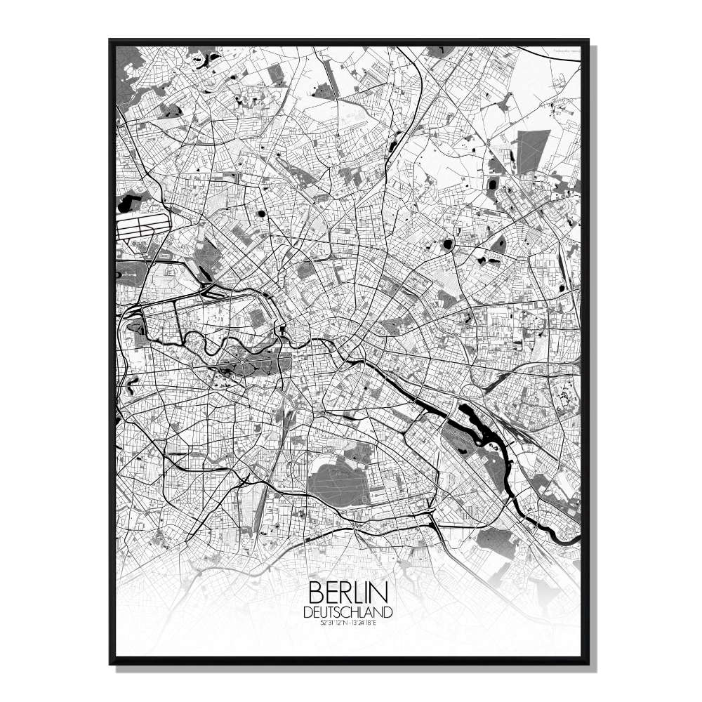Berlin carte ville city map n&b