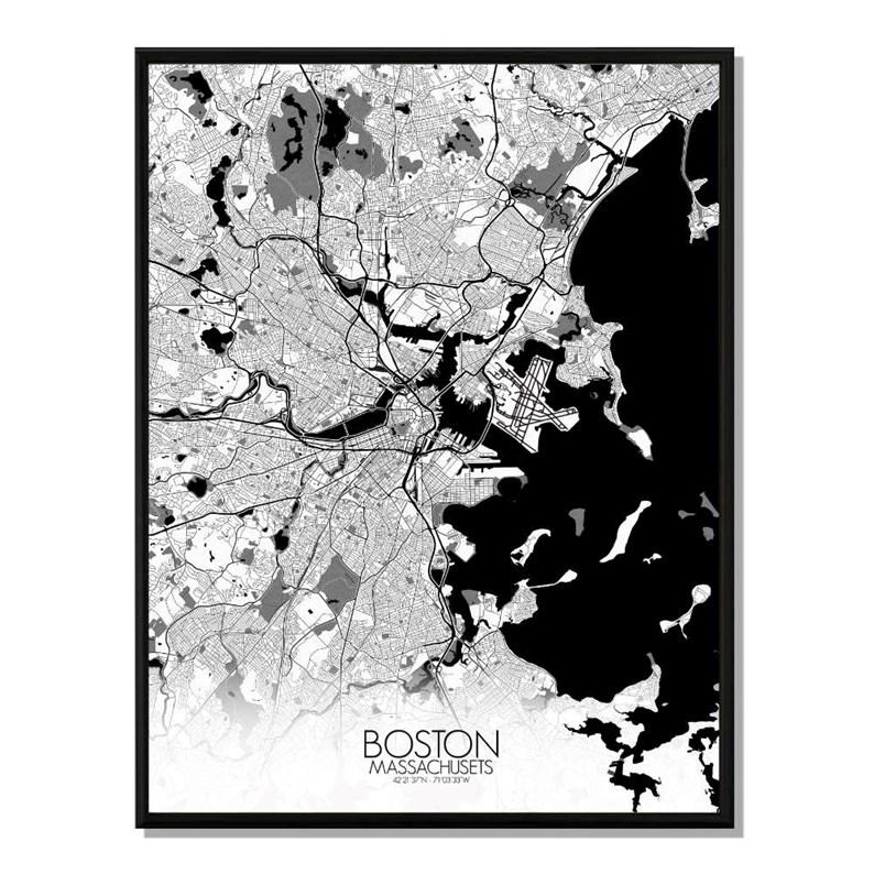 Boston carte ville city map n&b