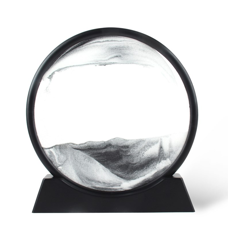 Son cadre noir est discret et solide afin que vous puissiez le retourner encore et encore et vous laissez fasciner par les sables envoûtants tombés, tourbillonnés et formés un nouveau design à chaque fois.